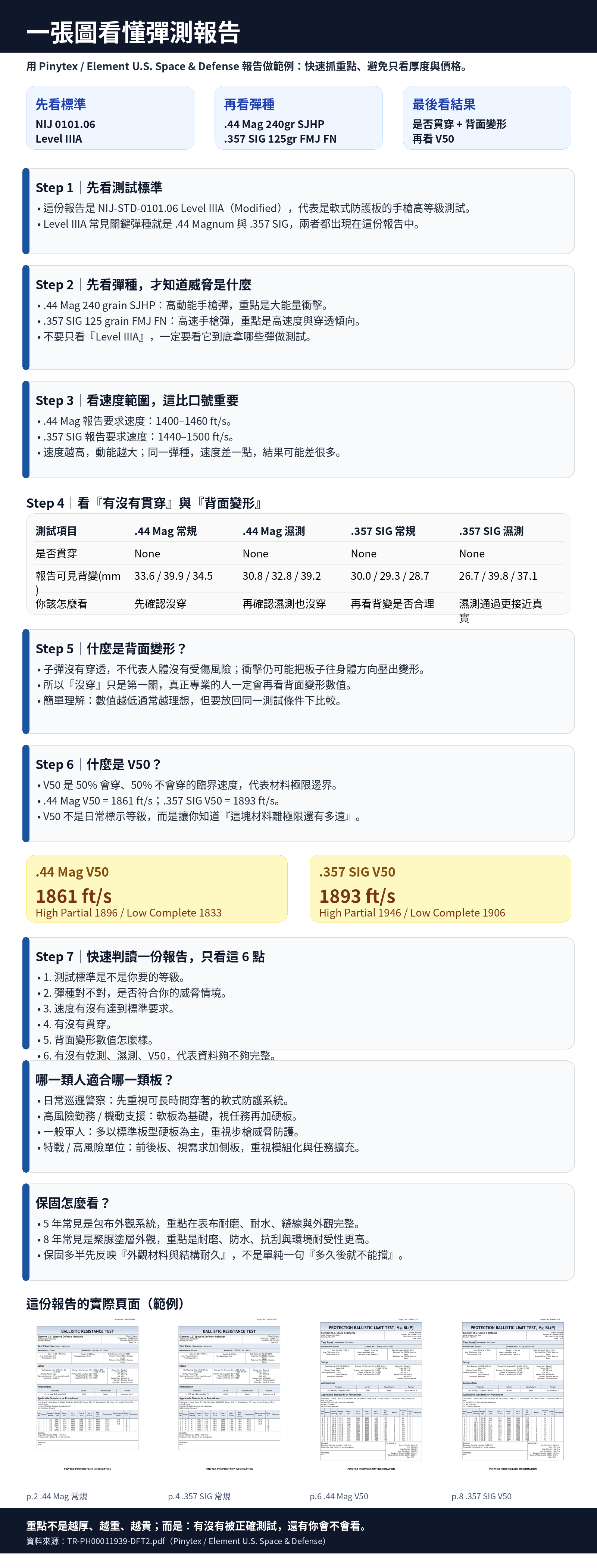 因為只有彈測報告,才是在告訴你: 這塊板到底是用什麼條件測、用了什麼彈、速度多少、是否穿透、背面變形多少、極限在哪裡。