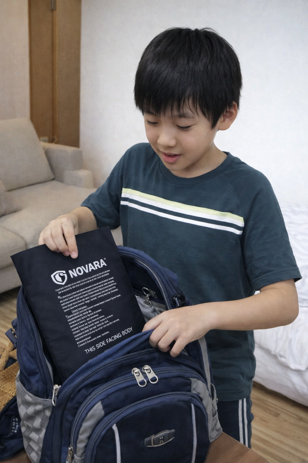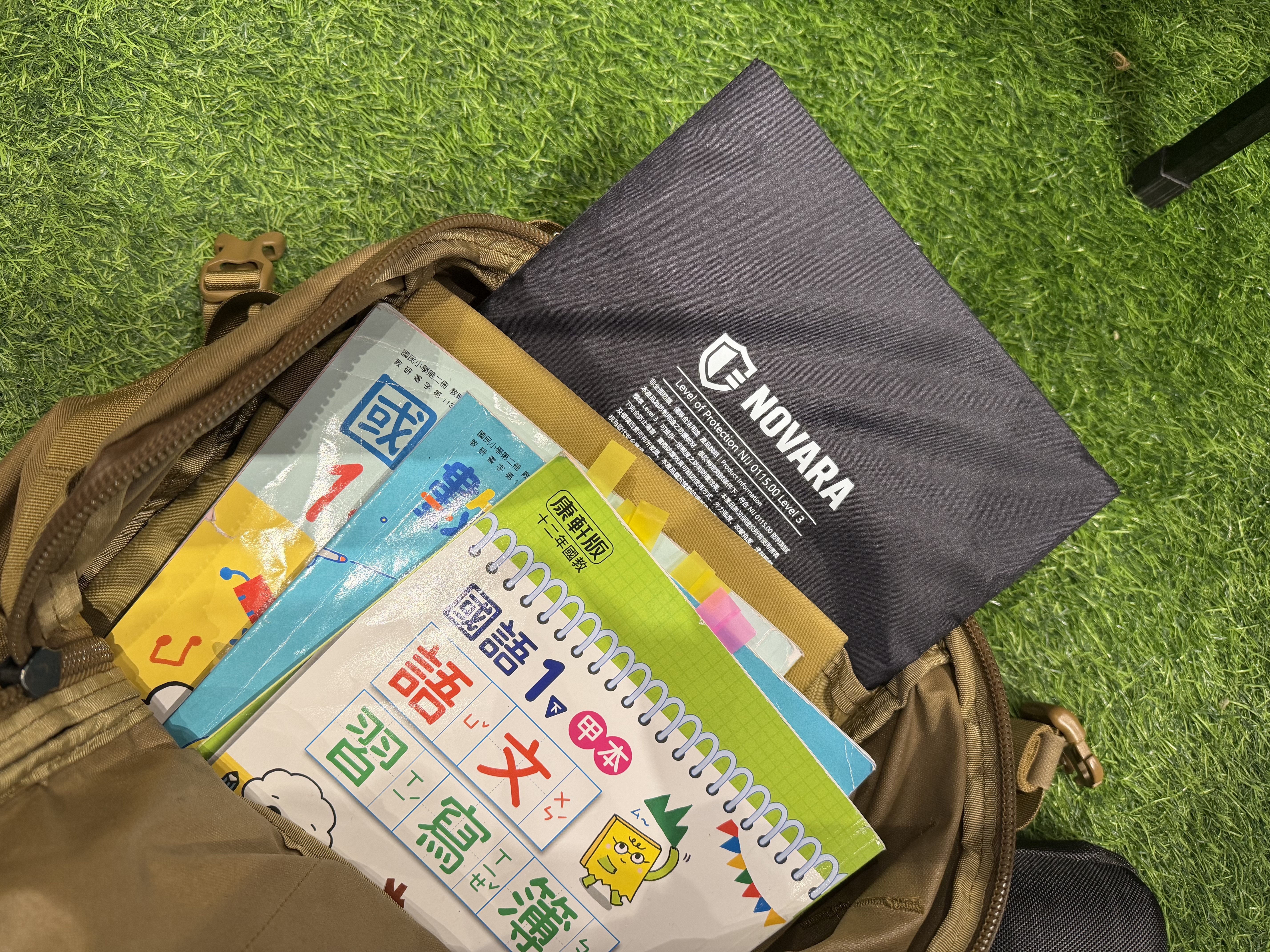 實際將 NOVARA 抗彈板放入書包中, 可以看到在日常使用情境下幾乎沒有額外負擔