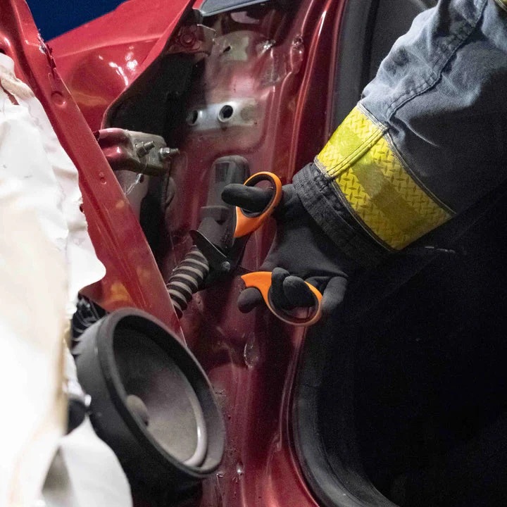 XShear 以高強度鋼材與精準刃口角度打造,支援「推切(push cut)」與「捏切(squeeze cut)」兩種連貫節奏。推切用於長行程剪開夾克、褲管與織帶;捏切適合在袖口、褲口建立入口,避免一開始就大面積撕裂。刀背經過圓鈍處理,貼皮膚滑行時不會二度傷害。
